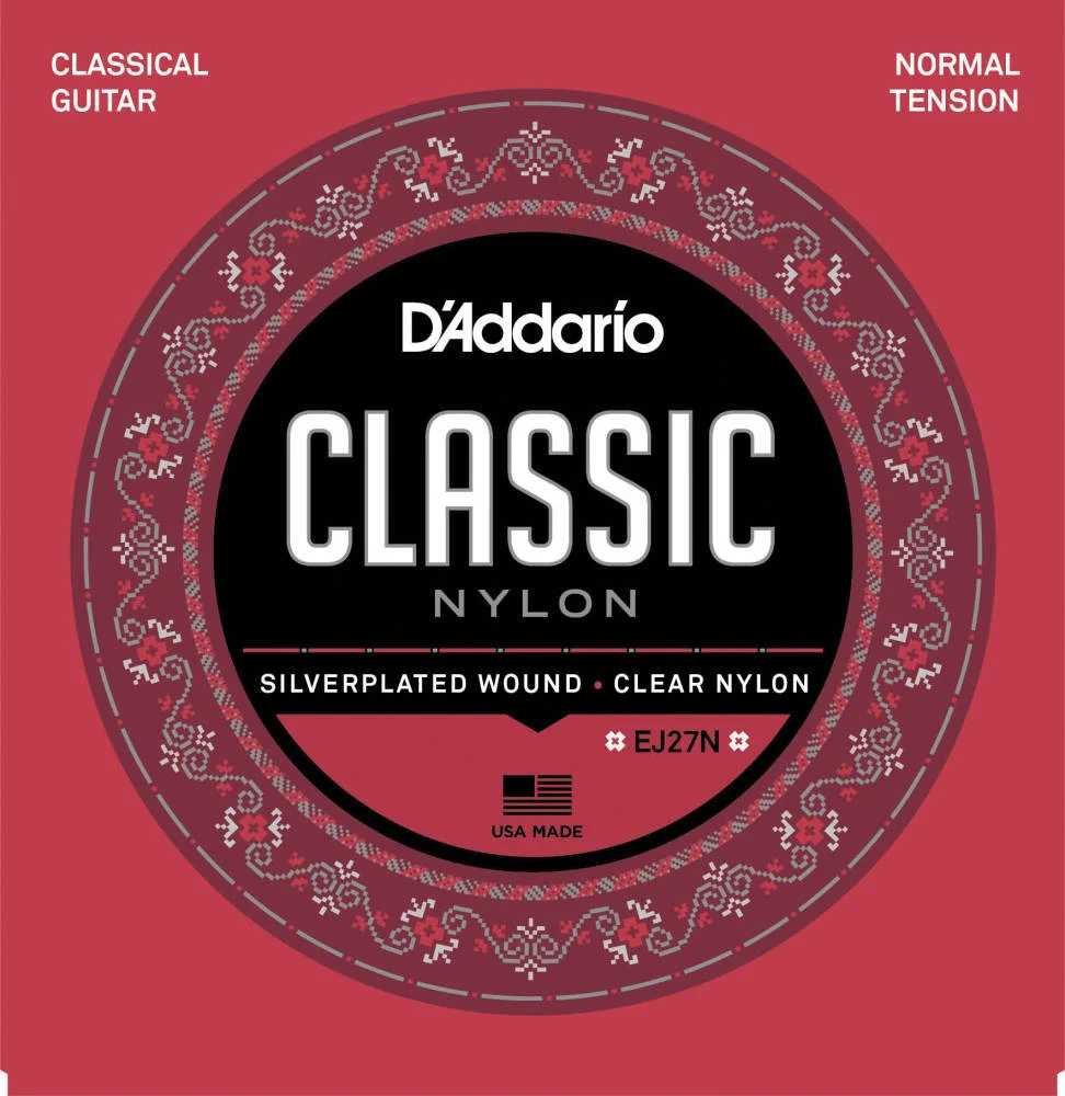 EJ27N classical guitar strings are great for beginners and students. The set contains 3 clear nylon trebles and 3 silverplated copper wound on nylon basses for warm, long lasting tone.