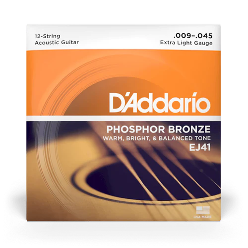 D’Addario was the first to use Phosphor Bronze in acoustic guitar strings back in 1974. Today, Phosphor Bronze is played throughout the world and considered to be the standard in acoustic strings, thanks to its beautiful sonic balance and tonal warmth. Our pioneering Phosphor Bronze acoustic guitar strings are precision wound with phosphor bronze wrap wire over a high-carbon steel core, providing tonal versatility suitable for all acoustic styles and musical genres. This 09-45 Extra Light 12-String set is D’Addario’s lightest gauge for 12-string acoustic guitar, providing easy playability while retaining adequate tone and projection for most playing situations.